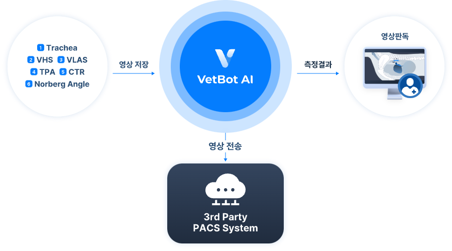 VetBot 는 판독 워크플로우 향상을 위해 인공지능 기반의 자동 측정 서비스를 제공하여